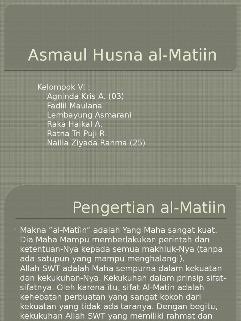 | Baca: Makna Dan Arti Al Matin Dalam Asmaul Husna Lengkap 99 Asmaul Husna Dan Artinya Pekanbaru |