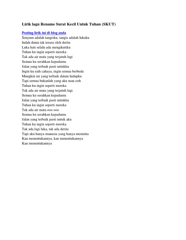 | Baca: Lirik Lagu Rename Surat Kecil Untuk Tuhan Pdf |